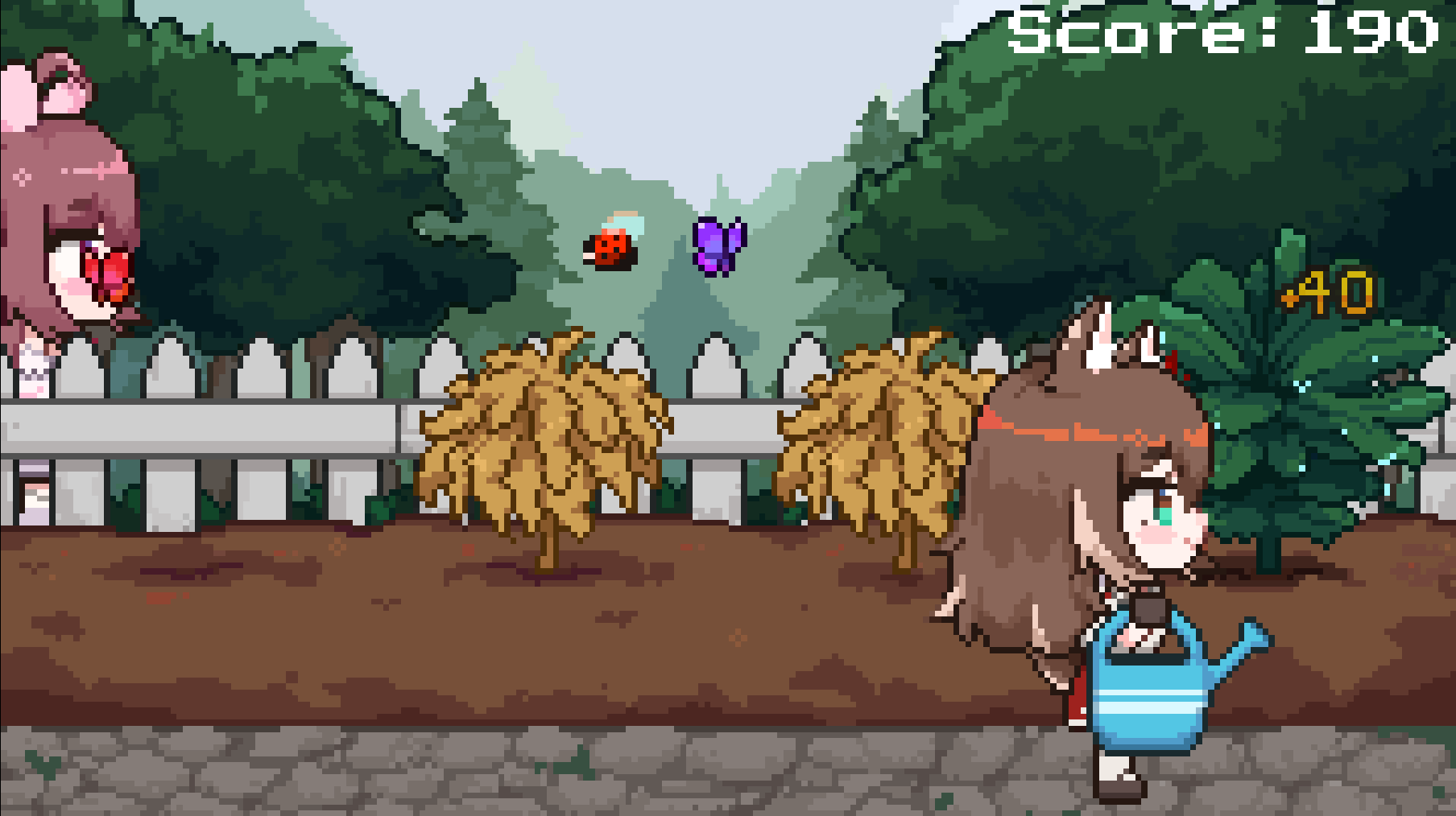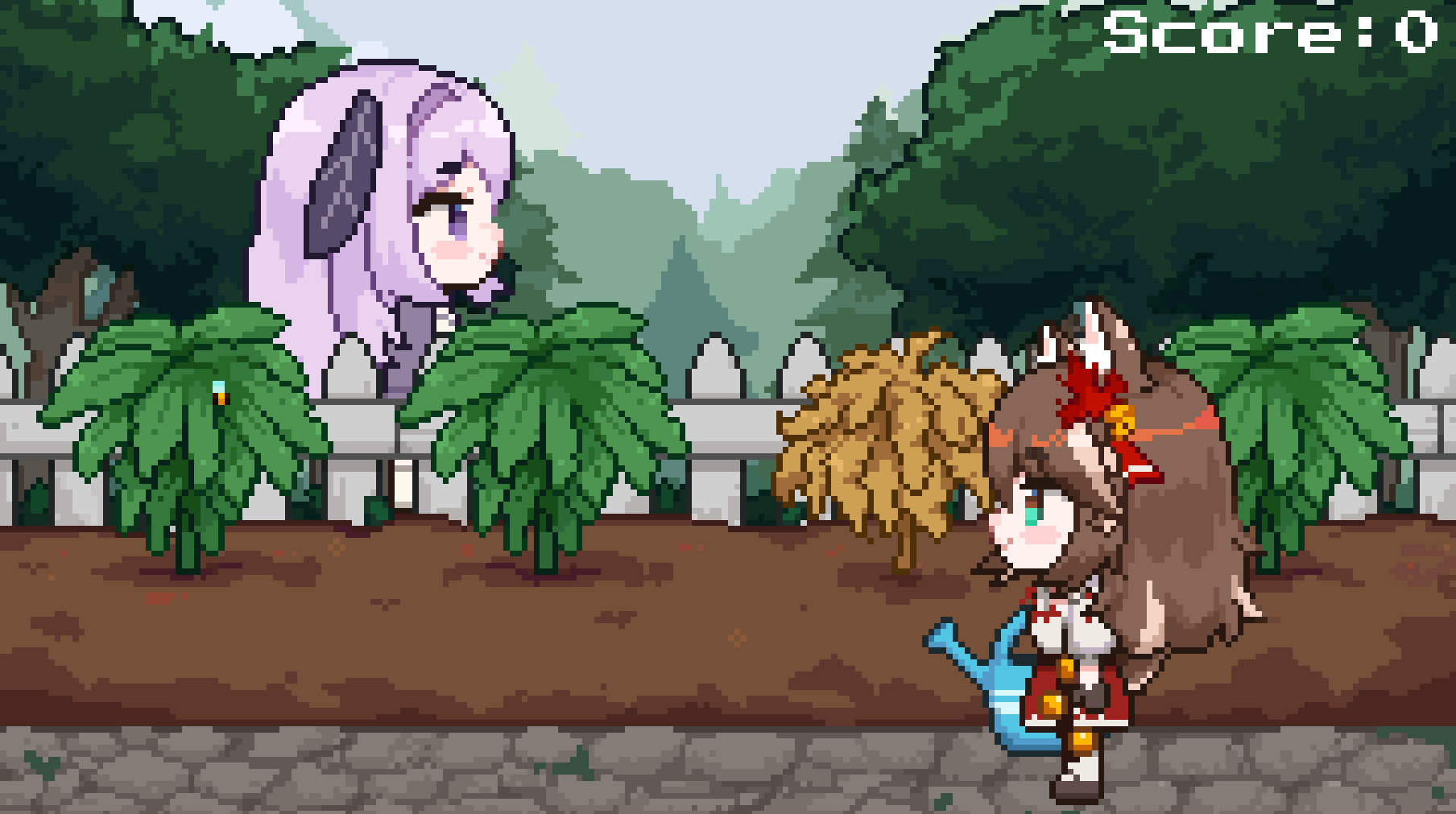 While walking through her garden, Daemo the Potion Seller Vtuber accidentally drops a Drought Potion! Suddenly, all the plants in her garden are shriveling! Daemo must race through and water all the plants while waiting for the potion's effects to run out. (Warning, you will lose)